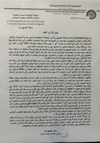 النيابة العامة بالمحكمة المتخصصة في محاربة العبودية تقرر حفظ ملف حالة استعباد مفترضة لانتفاء أركان الجريمة