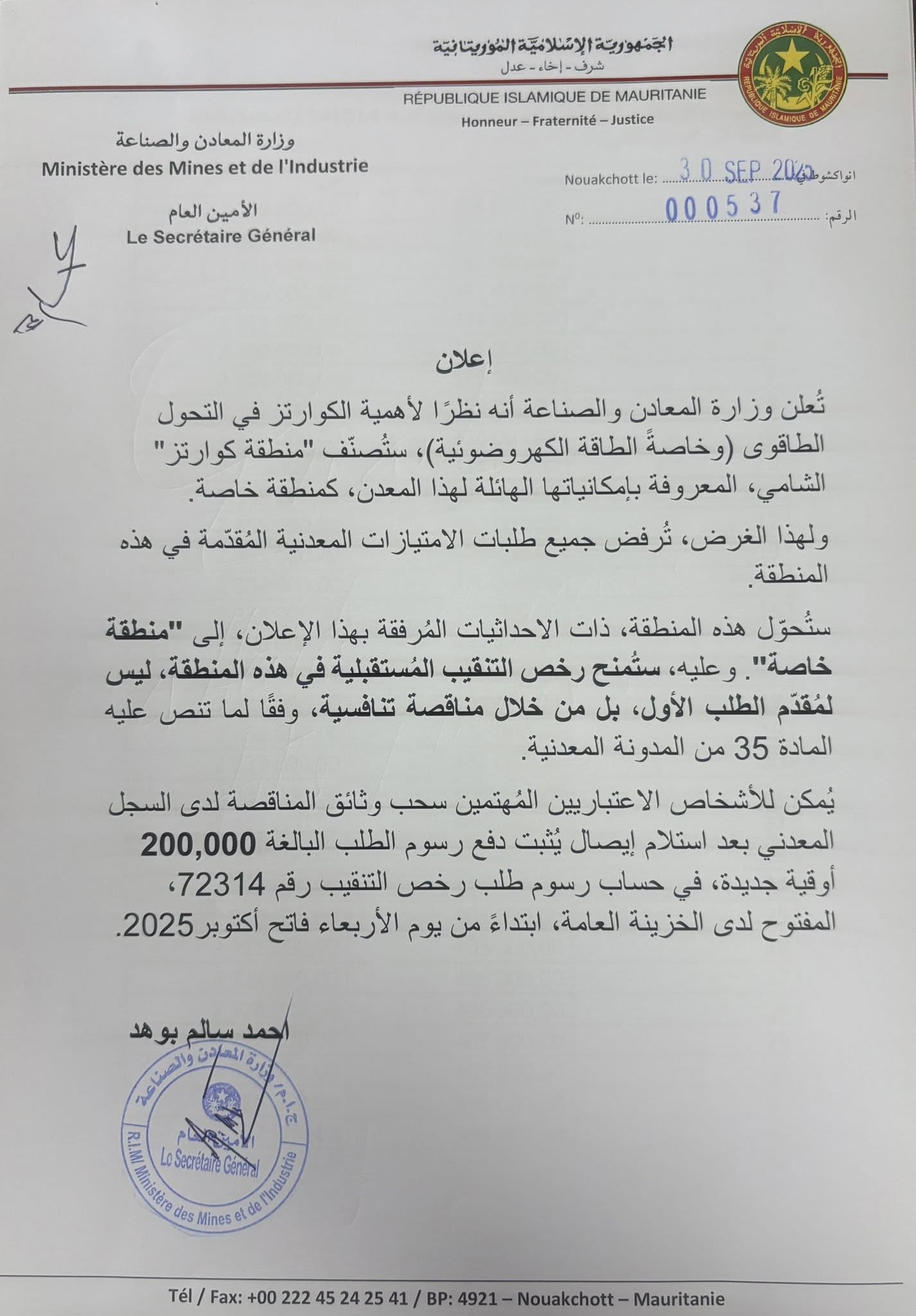 لست أخجل اليوم من أن أُعلن اعتذاري للسيد الوزير الأول السابق المهندس يحي حدمين . بعد تحفظاتي السابقة، استمعت مؤخرًا إلى مقاطع تُبرز نزاهته واعترافه الصادق بجهود ونزاهة المدير العام عبد المجيد الريحه للشركة الموريتانية للماء SNDE عند تفتيشه آنذاك لأحدى الشركات فوجد تآمر بين شركة وطنية وشركة أجنبية يبلغ حوالي 7ملايين دولار .