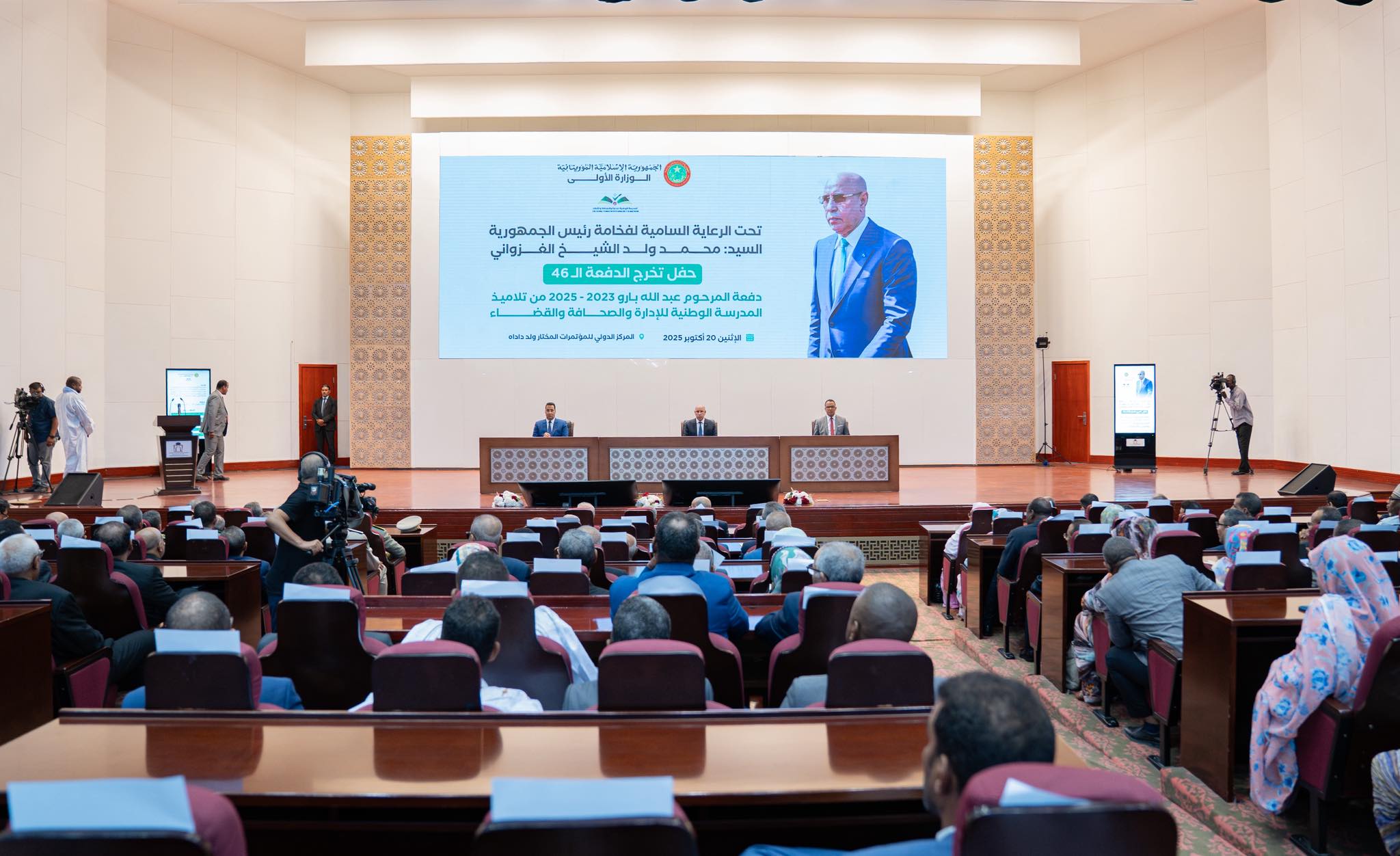 أشرف مساء اليوم الإثنين الرئيس الموريتاني محمد ولد الشيخ الغزواني بالمركز الدولي للمؤتمرات “المختار ولد داداه”، على حفل تخرج الدفعة الـ46 للمدرسة الوطنية للإدارة والصحافة والقضاء.