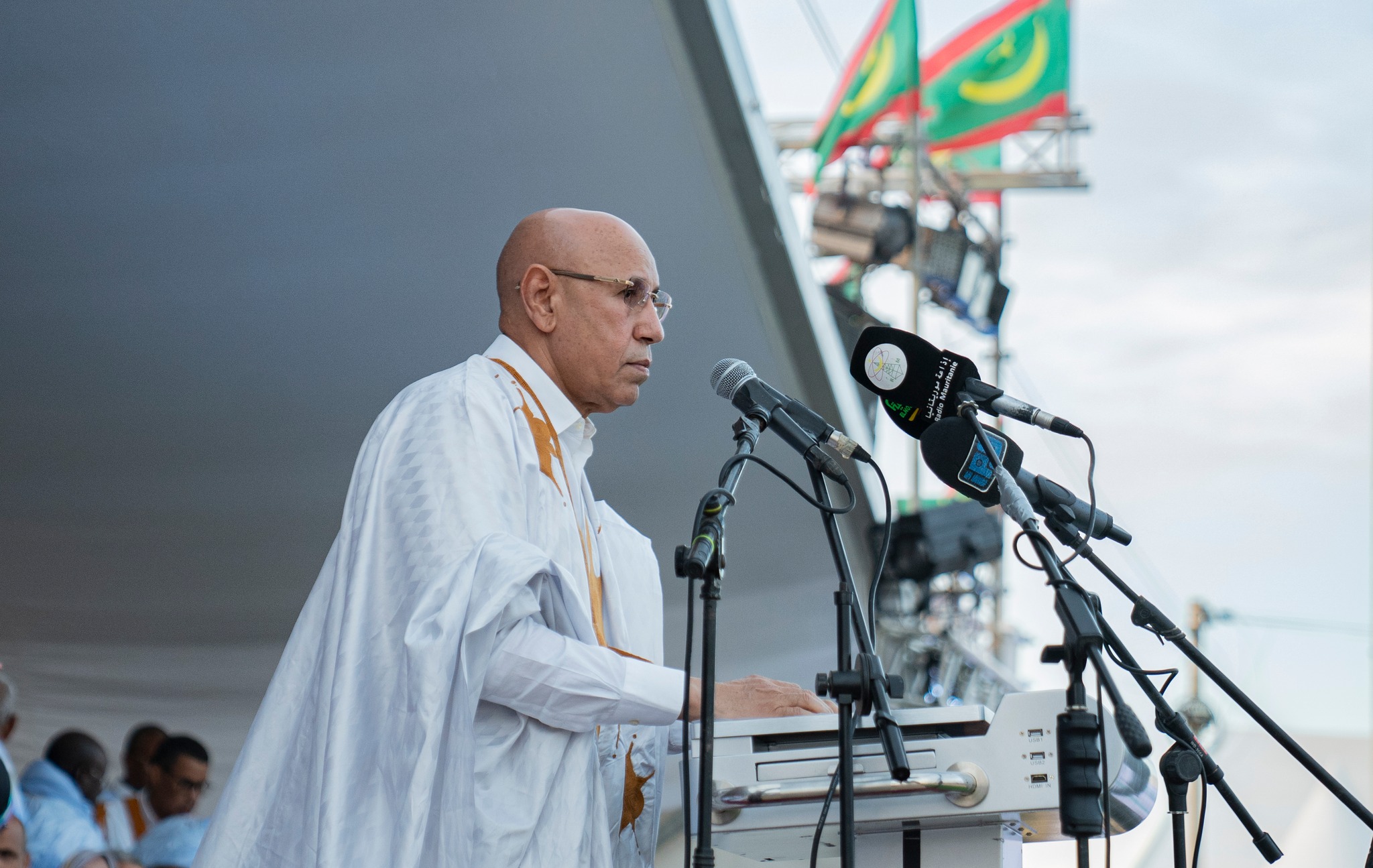 وبخصوص ولايتكم، ولاية الحوض الشرقي، أشير إلى أنه بحكم أهميتها وحكم موقعها الاستراتيجي المتميز خصص لها نصيبا معتبرا من هذا الجهد الاستثماري الوطني الهام الذي تحدثت عن جزء منه، ودليل ذلك أنه تم فيها استثمار ما يناهز 100 مليار أوقية قديمة، وقد مكن هذا الاستثمار في الولاية من بناء أكثر من 400 حجرة دراسية وبناء وتجهيز عشرات النقاط الصحية وحفر أكثر من 159 بئرا ارتوازيا وتجهيز عشرات النقاط المائية، وبناء عشرات السدود الزراعية الكبيرة والحواجز المائية وبناء أكثر من 120 محطة رعوية وحظيرة تلقيح، وإعادة تأهيل مصنع الألبان في النعمة وإنشاء مزرعة البهكة والحظيرة النموذجية في تمبدغة وعشرات نقاط تجميع الألبان في الولاية، وتم كذلك البدء في العمل فيما يزيد على 440 كلم من الطرق المعبدة في الولاية، وهذه الطرق تم تشييد 190 كلم منها بالفعل ويستمر العمل في تشييد 246 كلم منها من بينها الطريق الرابط بين تمبدغة والنعمة، وكما تعلمون لم يتبق منها سوى ما يزيد قليلا على 30 كلم، ونتيجة لتأخر هذا المقطع قررنا سحب ما تبقى من الشركة المنفذة له وإسناد تنفيذه لشركة جديدة من أجل التسريع بإنهاء ما تبقى من هذا المحور الطرقي.