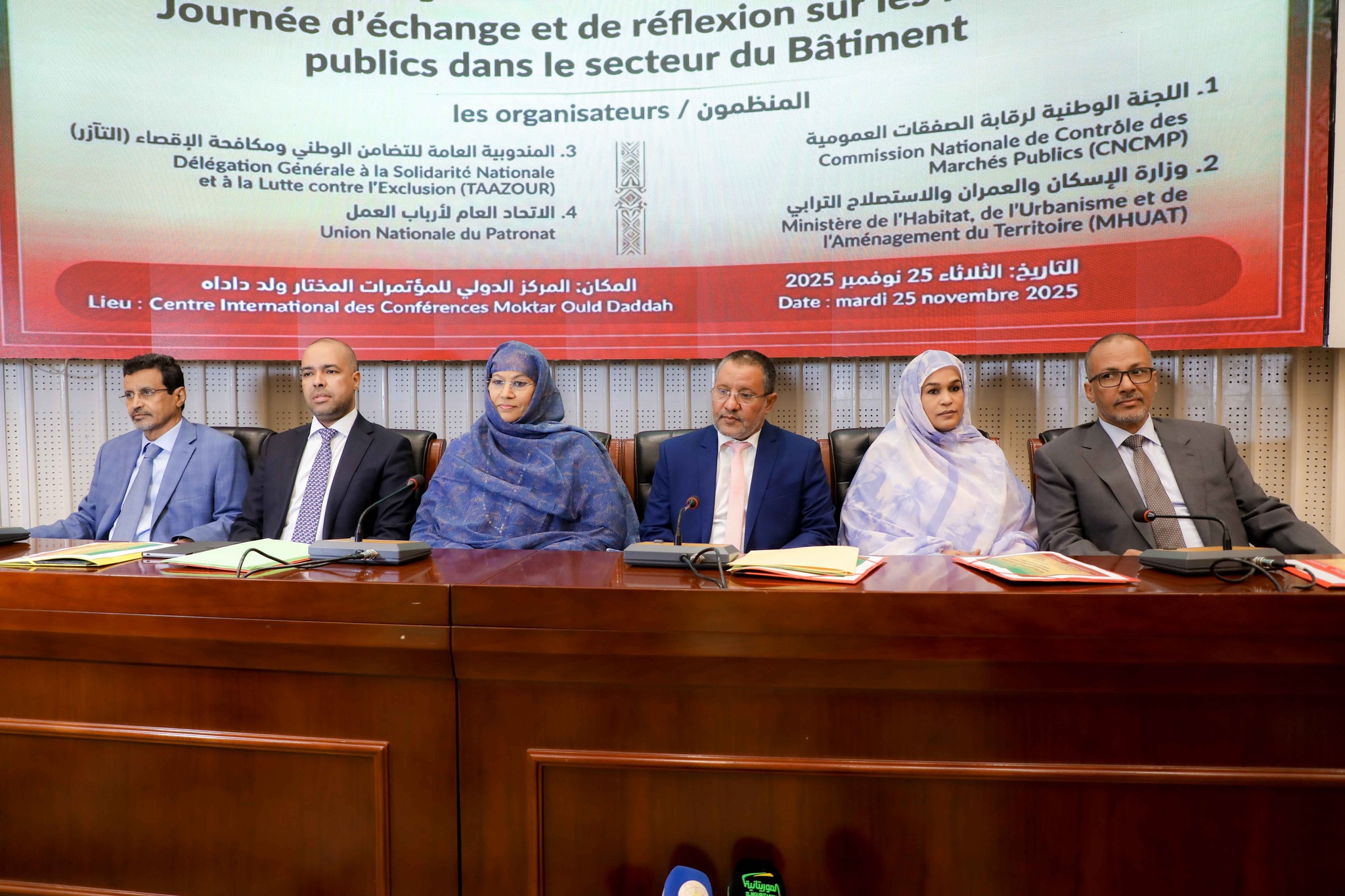 وأضافت معالي الوزيرة أن حكومة معالي الوزير الأول، السيد المختار ولد أجاي، مصممةٌ على عملية إصلاح شاملة، تهدف إلى جعل الطلبات العمومية أكثر شفافية وكفاءة وعدلًا وتكافؤًا للفرص. إذ يندرج نشاطنا اليوم ضمن هذه الديناميكية، ويفتح الباب على مصراعيه لحوار صريح وبنّاء، لتشخيصٍ تشاركي يفضي إلى حلول ملموسة وعملية. وهو ما يفسّر اختيارنا لشعار "من أجل تنفيذ سلس وفعال لصفقات البناء: من الإبرام إلى التسليم" لهذا اليوم التفكيري بالغ الأهمية.
