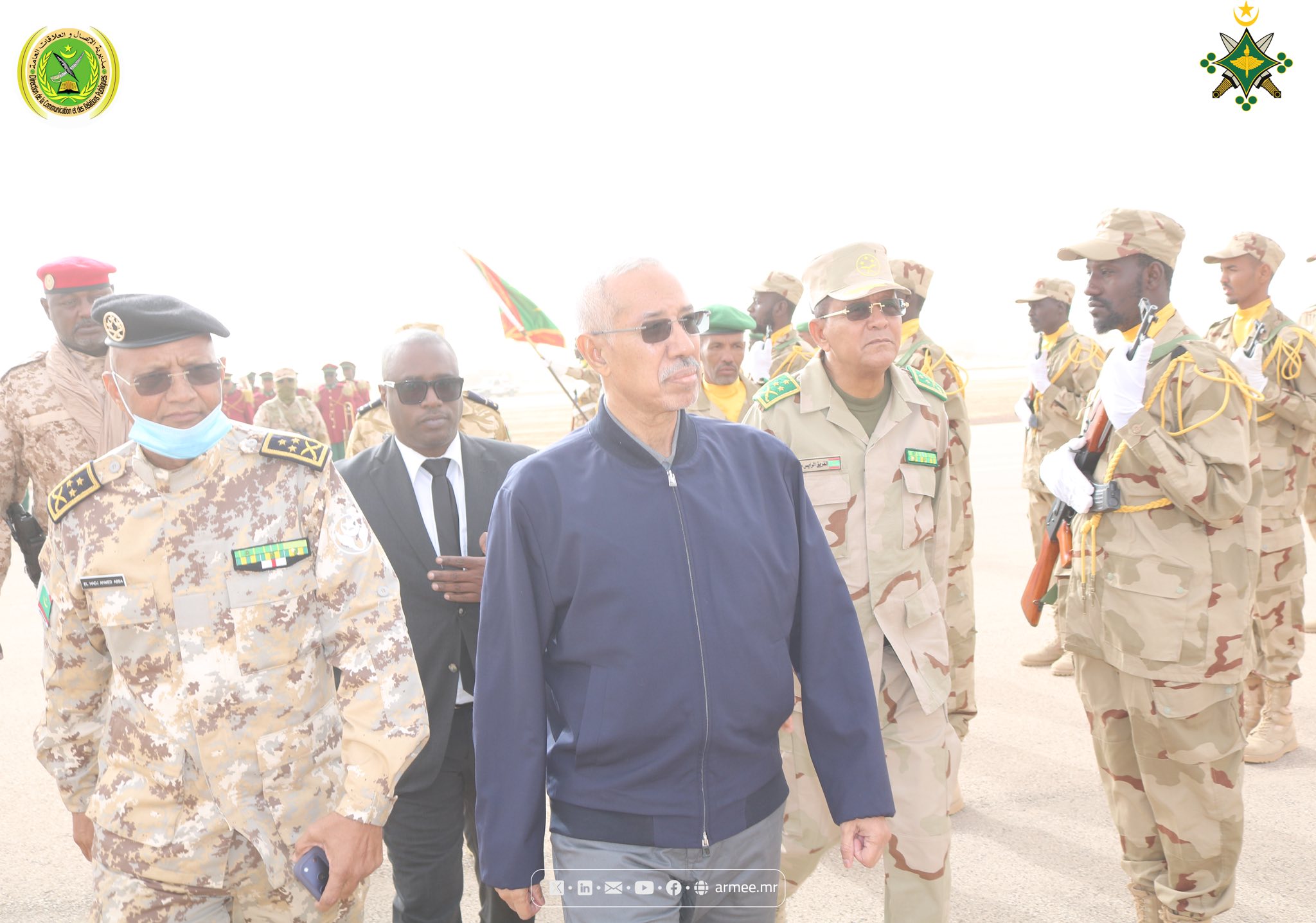 أشرف معالي وزير الدفاع وشؤون المتقاعدين وأولاد الشهداء؛ السيد حنن ولد سيدي، رفقة قائد الأركان العامة للجبوش؛ الفريق محمد فال الرايس الرايس، بمدينة كيفة، يوم الخميس 18 دجمبر 2025، على اختتام مناورات "صقر لعصابة"، والتي تنظمها الأركان العامة للجيوش في إطار تنفيذ خطط برمجة التمارين المشتركة لسنة 2025، وتشارك فيها القوات الخاصة إلى جانب الجيش الجوي، حيث استقبلا من طرف الفريق آبه بابتي الحاج أحمد؛ قائد الجيش الجوي، واللواء محمد الامين ابلال؛ قائد القوات الخاصة، والعقيد محمد أحمد الحاج أحمد، قائد المدرسة الوطنية لضباط الصف العاملين، وعدد من قادة المناطق العسكرية ومراكز التدريب المشاركين في الرقابة على التمرين، بالإضافة لعدد من الضباط المشاركين في مختلف مراحل التمرين.