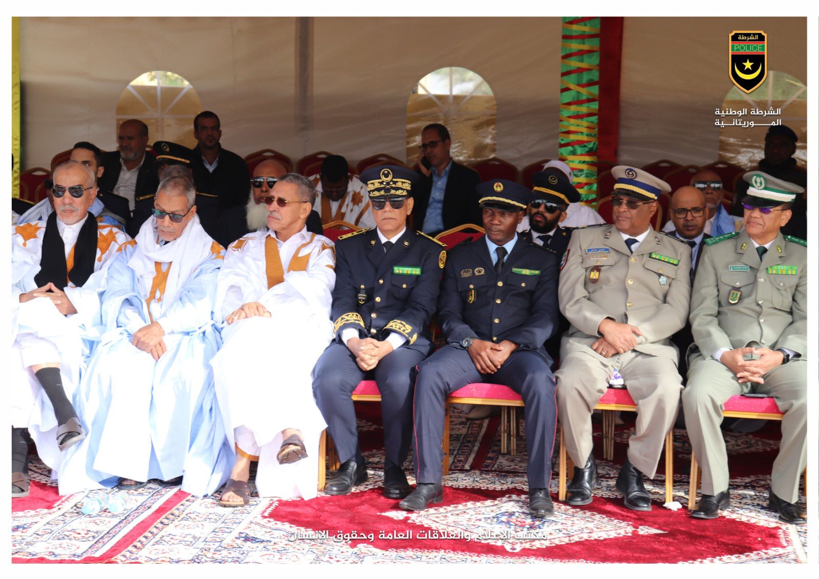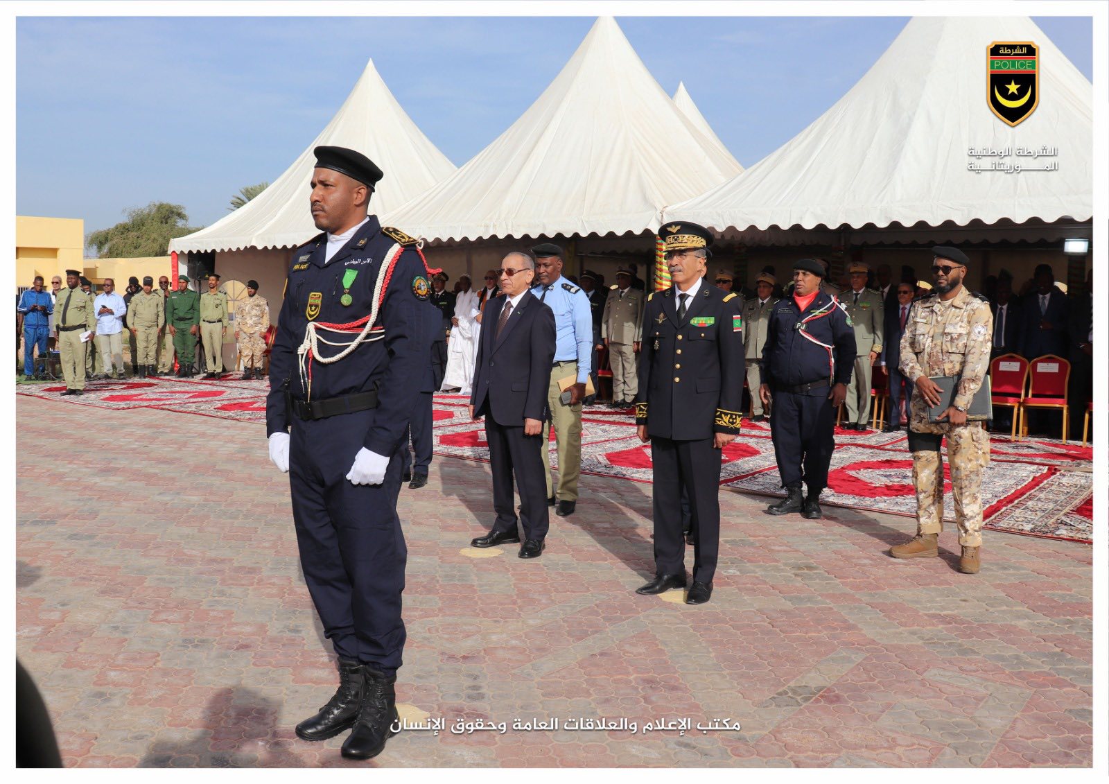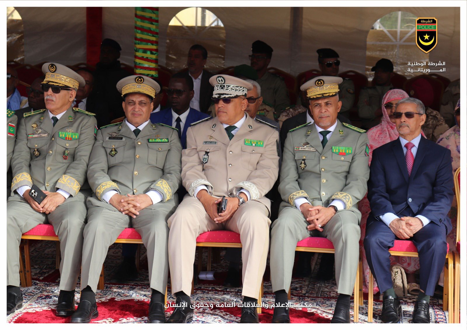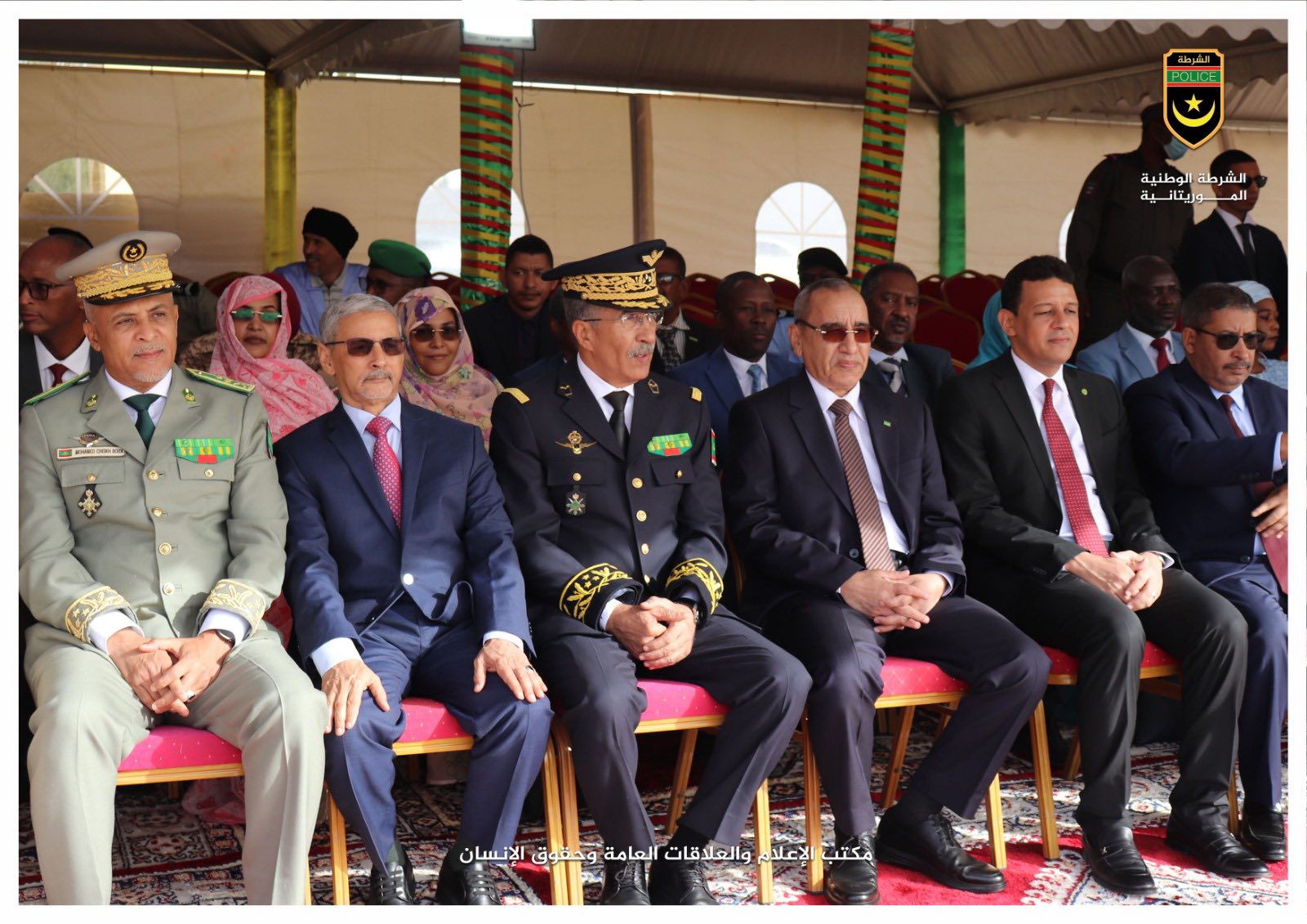 وقد بدأ الحفل بإستعراض معالي وزير الداخلية واللامركزية محمد احمد ولد محمد الأمين رفقة المدير العام للأمن الوطني الفريق محمد لحريطاني تشكيلات من الشرطة الوطنية أدت لهما تحية الشرف قبل أن يصافحا عددا من الضباط وضباط الصف والوكلاء.
