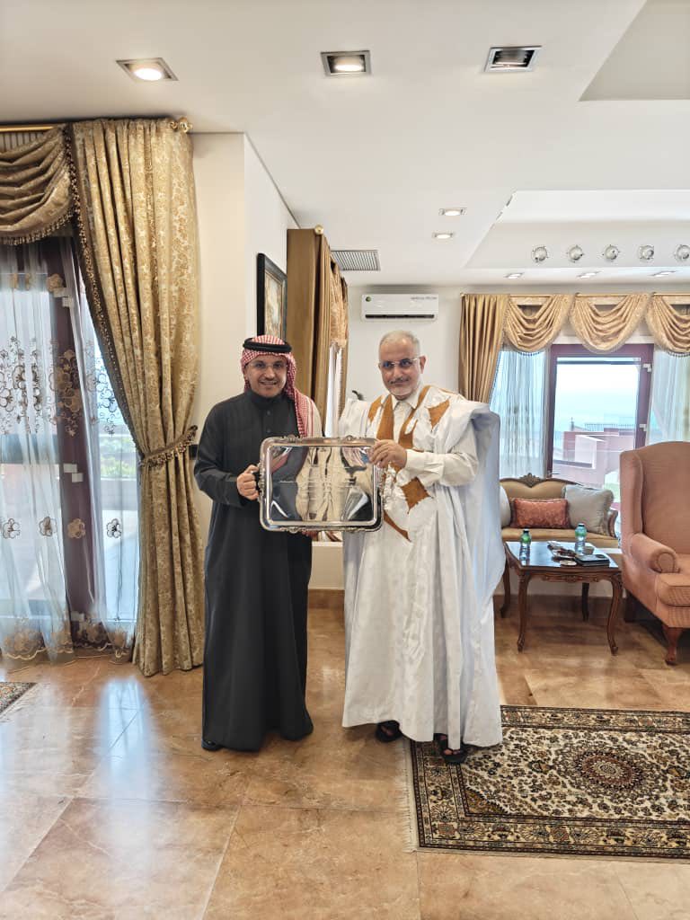 هذا وقد اهدى رئيس السلك الدبلوماسي العربي المعتمد لدى السنغال سعادة سفير المملكة العربية، الأستاذ سعد بن عبد الله النفيعي، باسمه ونيابة عن أعضاء السلك الدبلوماسي العربي، للسفير الموريتاني المغادر درعَ تكريمٍ له.