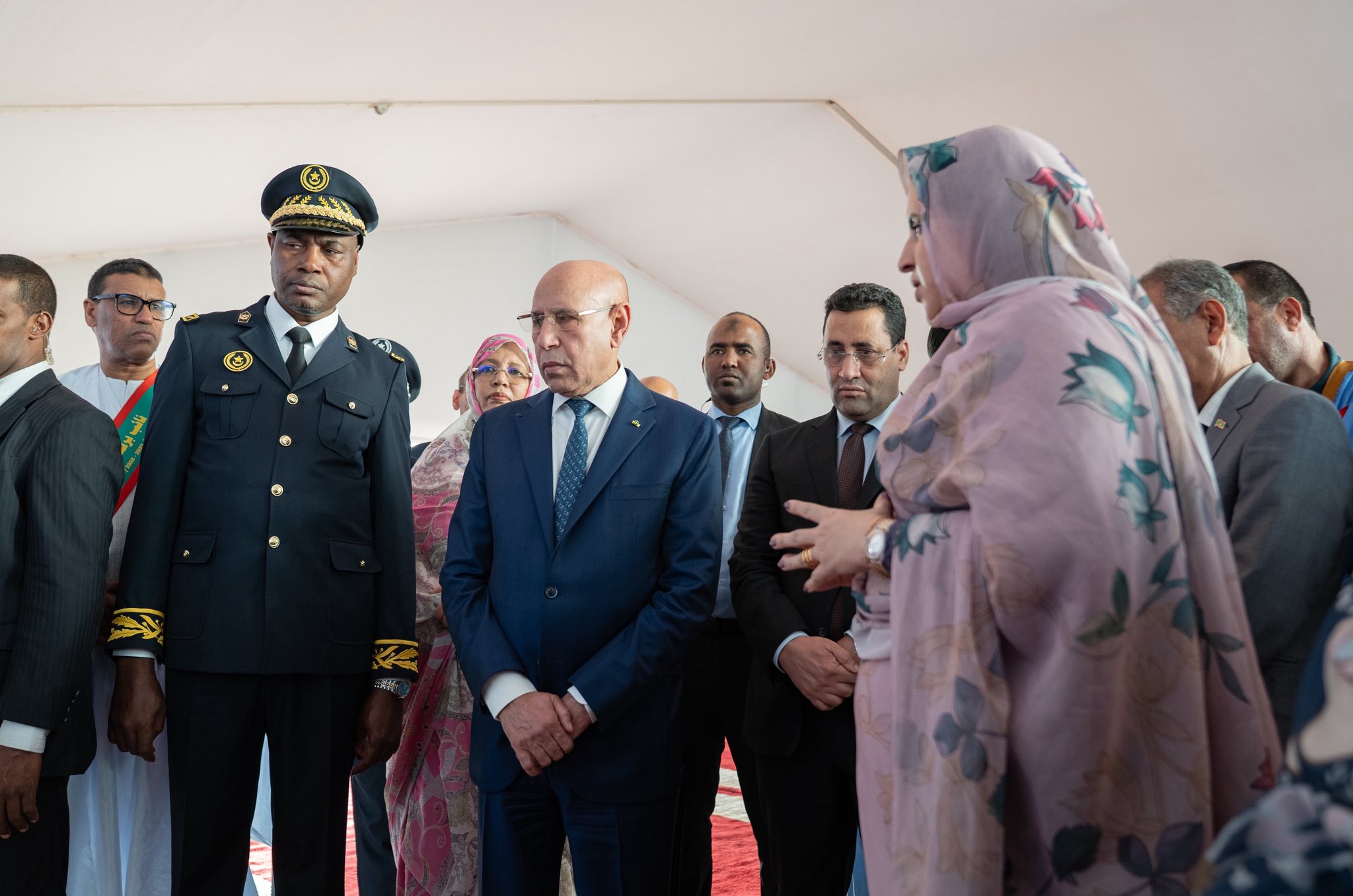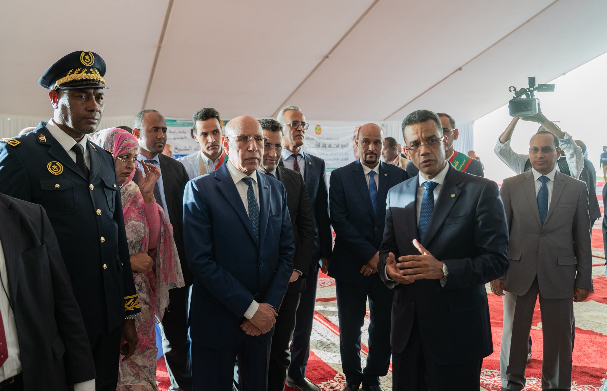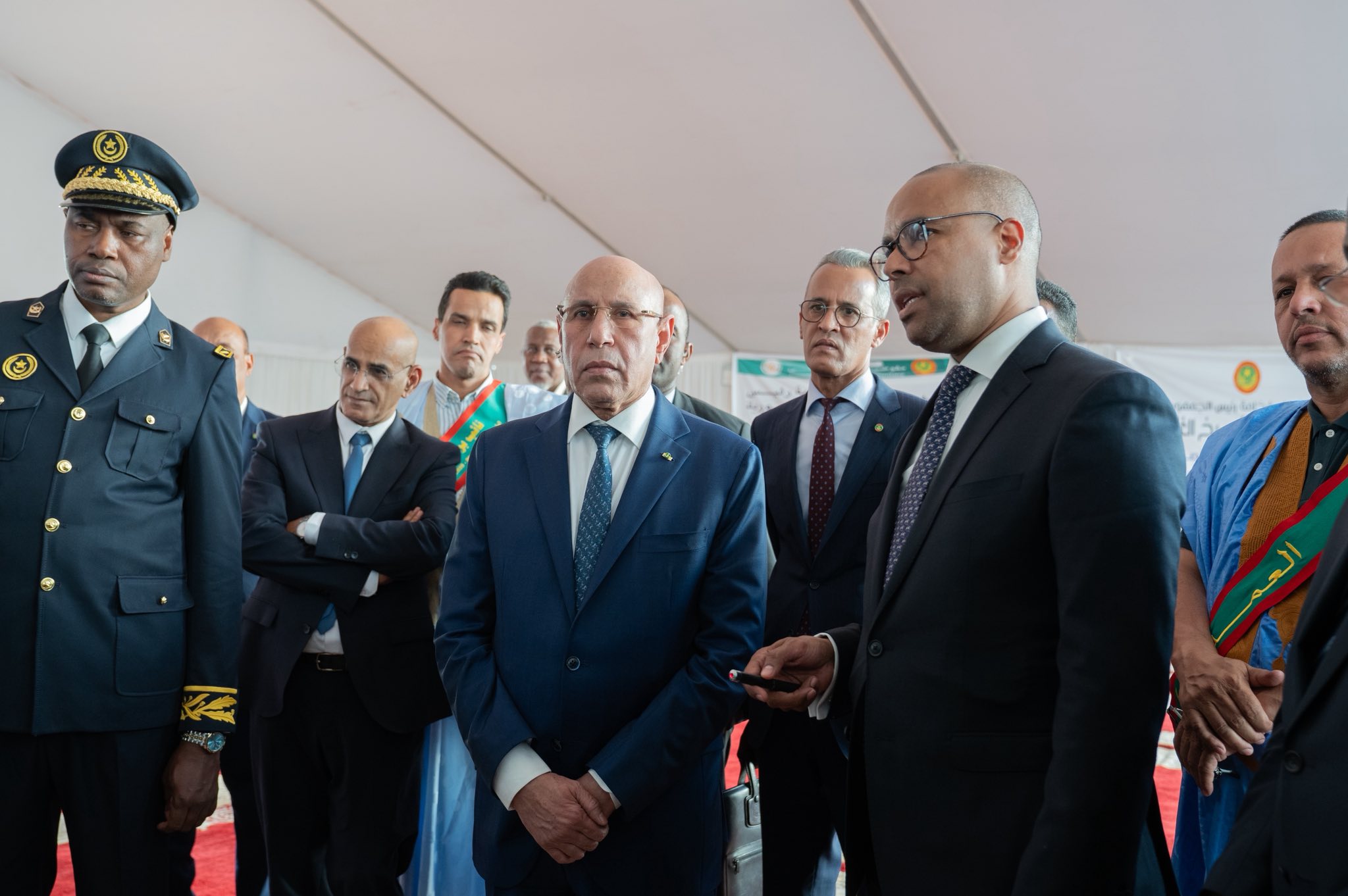 ورافق فخامة رئيس الجمهورية خلال هذه الجولة معالي الوزير الأول، السيد المختار ولد أجاي، ومعالي الوزير المكلف بديوان رئيس الجمهورية، السيد الناني ولد اشروقه، ووزراء القطاعات المتدخلة في البرنامج، ووالي نواكشوط الشمالية ورئيس الاتحاد الوطني لأرباب العمل الموريتانيين والمنتخبين.