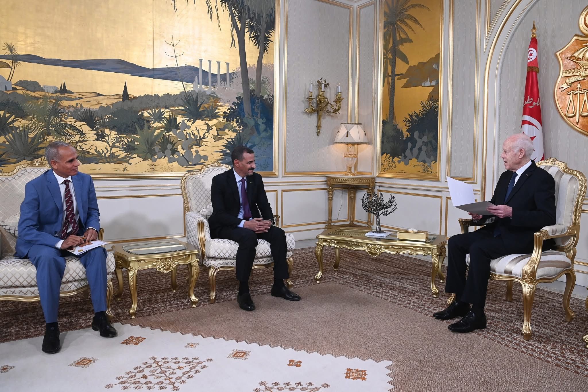 استقبل فخامة رئيس الجمهورية التونسية، قيس سعيّد، ظهر الجمعة 27 فبراير 2026 بالقصر الرئاسي بقرطاج، معالي وزير الثقافة والفنون والاتصال والعلاقات مع البرلمان، الناطق باسم الحكومة، السيد الحسين ولد مدو، الذي يؤدي زيارة إلى الجمهورية التونسية بصفته مبعوثًا خاصًا، محمّلًا برسالة خطية من فخامة رئيس الجمهورية السيد محمد ولد الشيخ الغزواني، تتعلق بتعزيز وترقية العلاقات الثنائية المتجذرة والمتميزة بين البلدين الشقيقين.