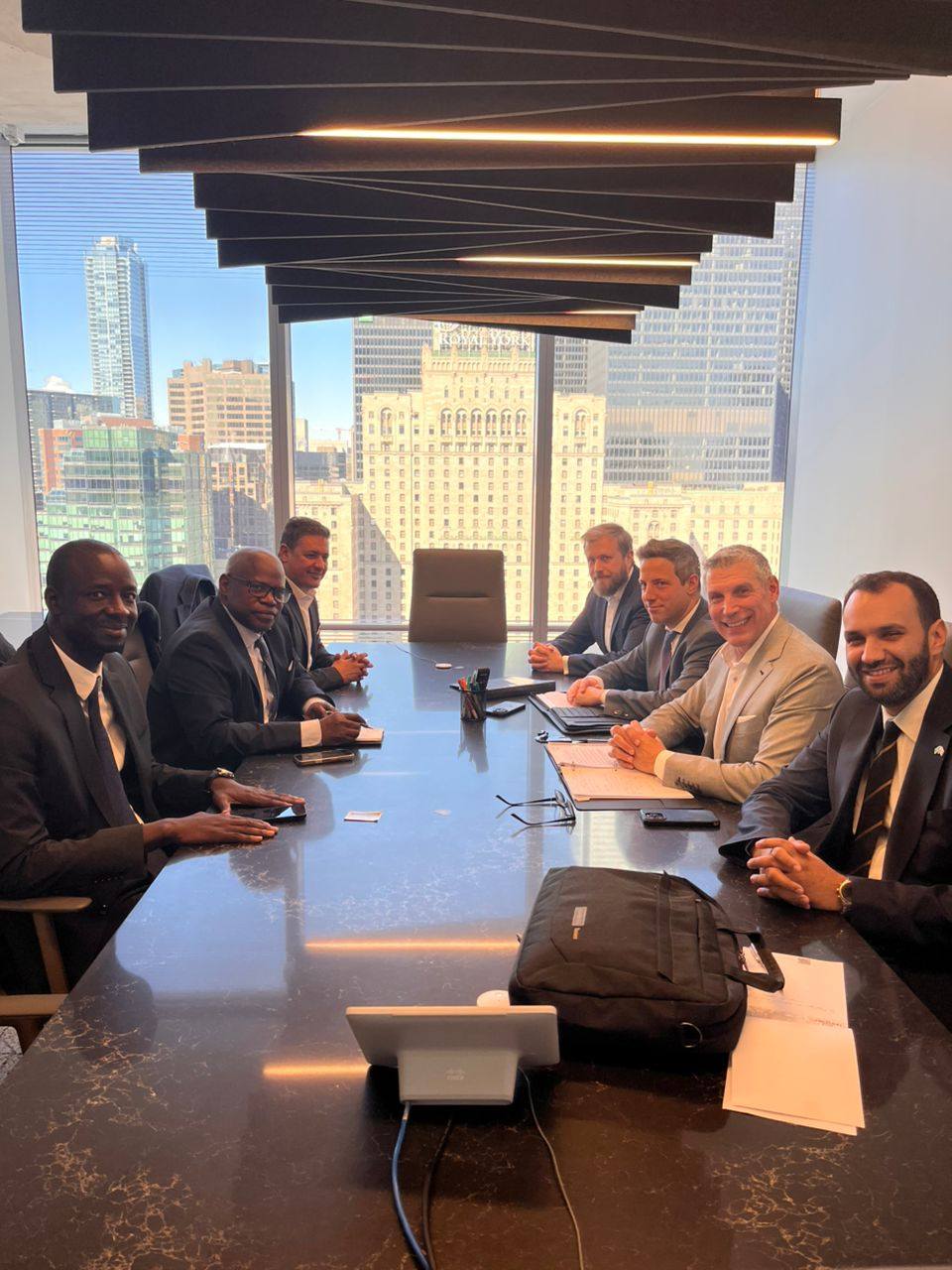 كما عقد معالي الوزير لقاءً مع رئيس شركة Kinross Gold Corporation السيد جيفري بي. غولد، بحضور المدير الفني لعمليات الشركة السيد ويليام دنفورد، حيث تم بحث وضعية مشاريع الشركة في موريتانيا وآفاق تطويرها، إضافة إلى سبل تعزيز مساهمتها في التنمية المحلية ونقل الخبرات.