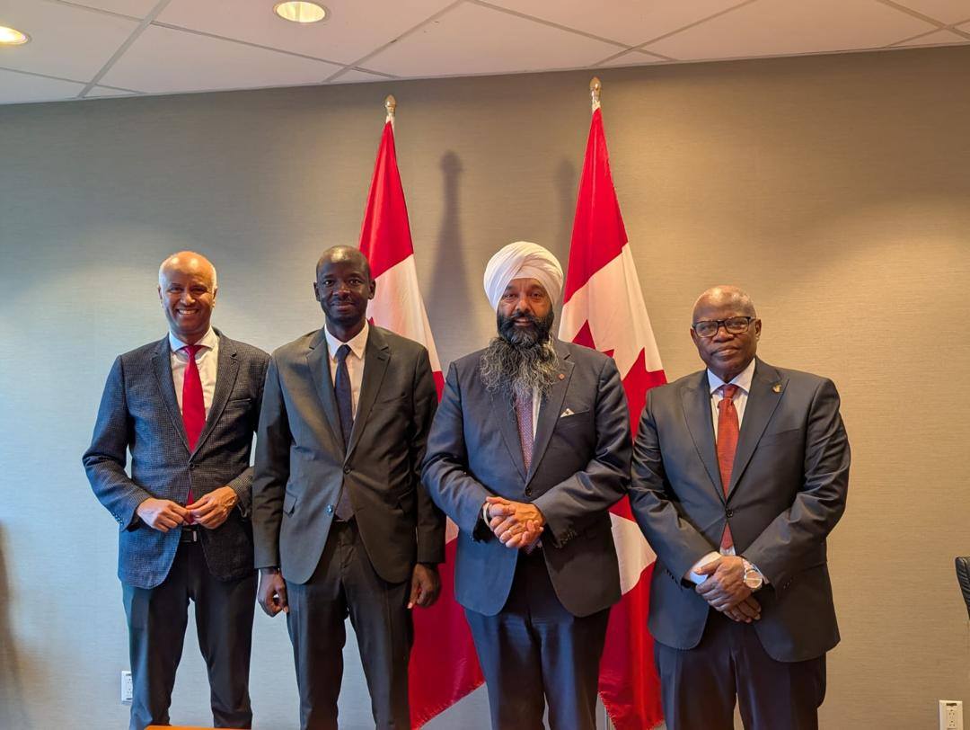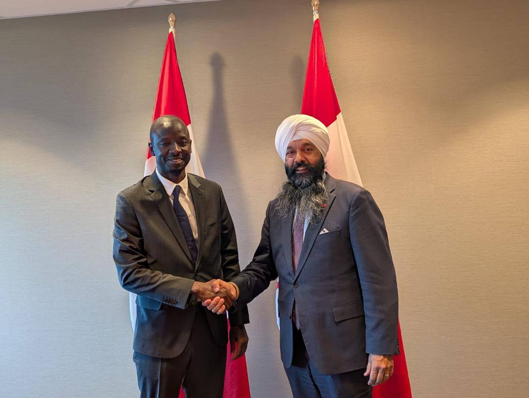 عقد معالي وزير المعادن والصناعة اتيام التجاني يوم الاثنين 02 مارس 2026، سلسلة لقاءات رسمية في مدينة Toronto، استهلها باجتماع مع سعادة كاتب الدولة المكلف بالتنمية الدولية، السيد رانديب ساراي، وذلك بالمكتب الإقليمي للوزراء.