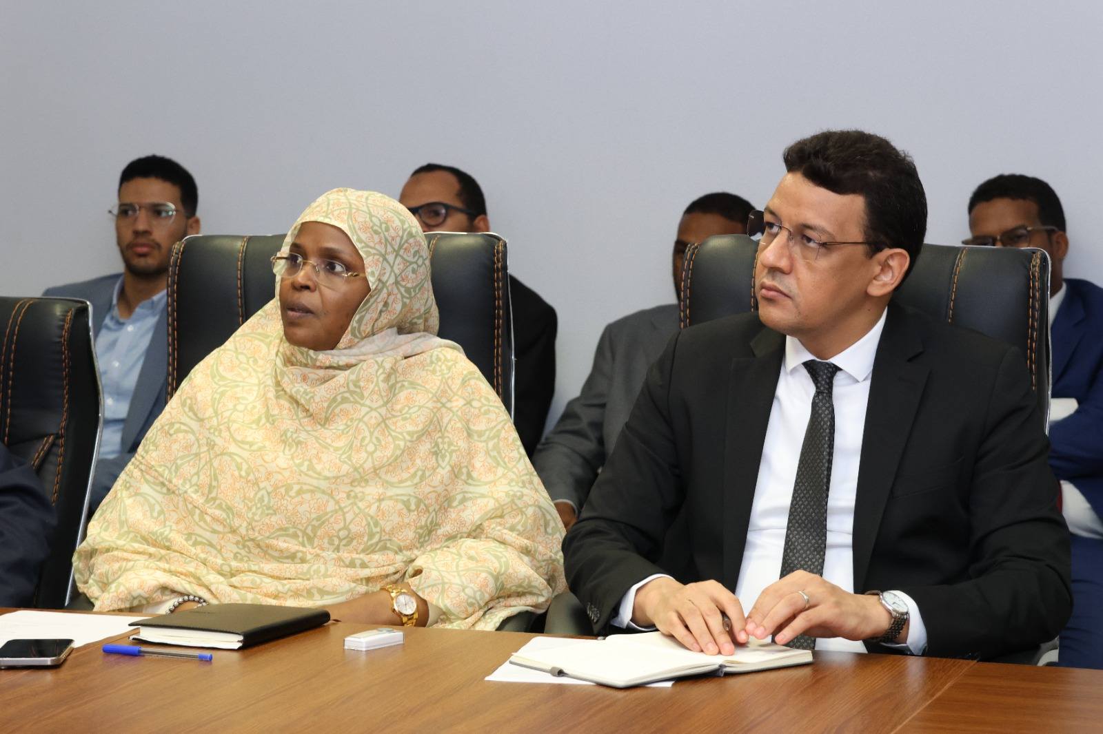 جرى الاجتماع بحضور الأمين العام لوزارة الوظيفة العمومية والعمل السيد محمد المختار ولد المصطفى والطواقم الفنية لقطاعي الوظيفة العمومية والعمل، والتحول الرقمي وعصرنة الإدارة.