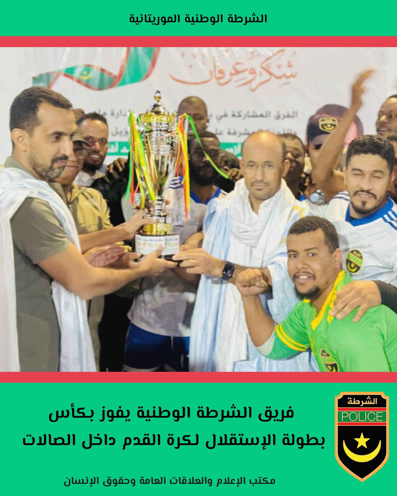 توج ليلة البارحة 29 نفمبر 2025 فريق الشرطة الوطنية بكأس بطولة الإستقلال لكرة القدم داخل الصالات التي أشرف على تنظيمها عمدة بلدية ازويرات ، حيث فاز فريق الشرطة الوطنية على فريق الدرك الوطني ب 8 أهداف مقابل 5 .